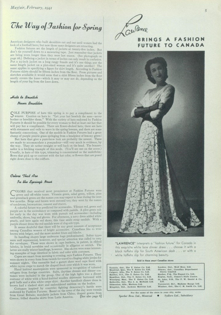 1941 MAYFAIR FEBRUARY CANADIANA1941 MAYFAIR FEBRUARY CLOSEUP1941 MAYFAIR FEBRUARY MELBROOK1941 MAYFAIR FEBRUARY MAGNONE1941 MAYFAIR FEBRUARY DEJA1941 MAYFAIR FEBRUARY LANGBOURNE1941 MAYFAIR FEBRUARY WINFREY1941 MAYFAIR FEBRUARY POLLY TUCKER 1941 MAYFAIR FEBRUARY NAN TAYLOR1941 MAYFAIR FEBRUARY ORIGINAL JUNIOR1941 MAYFAIR FEBRUARY LAWRENCE1941 MAYFAIR FEBRUARY ALFANDRI1941 MAYFAIR FEBRUARY ROBERT SIMPSON CO.1941 MAYFAIR FEBRUARY FASHION CREATORS1941 MAYFAIR FEBRUARY CANADIANA
