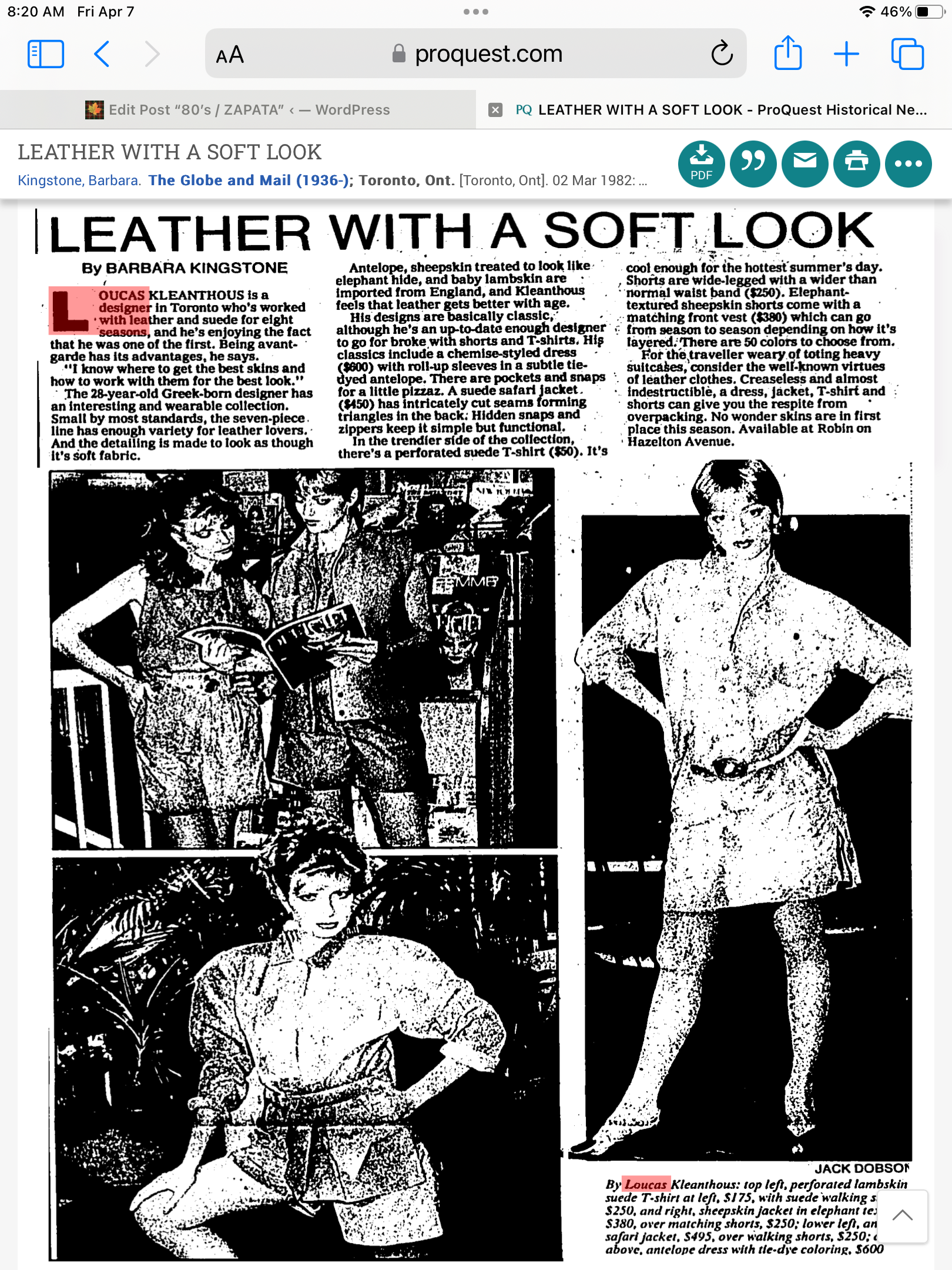 1982 LOUCAS FASHION SPRING 1982