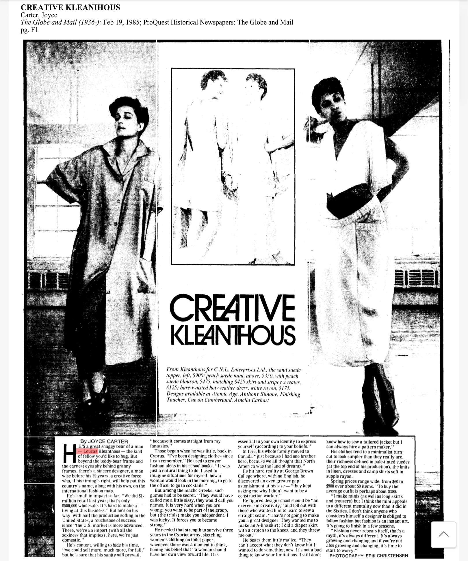 1985 loucas GLOBE FEB