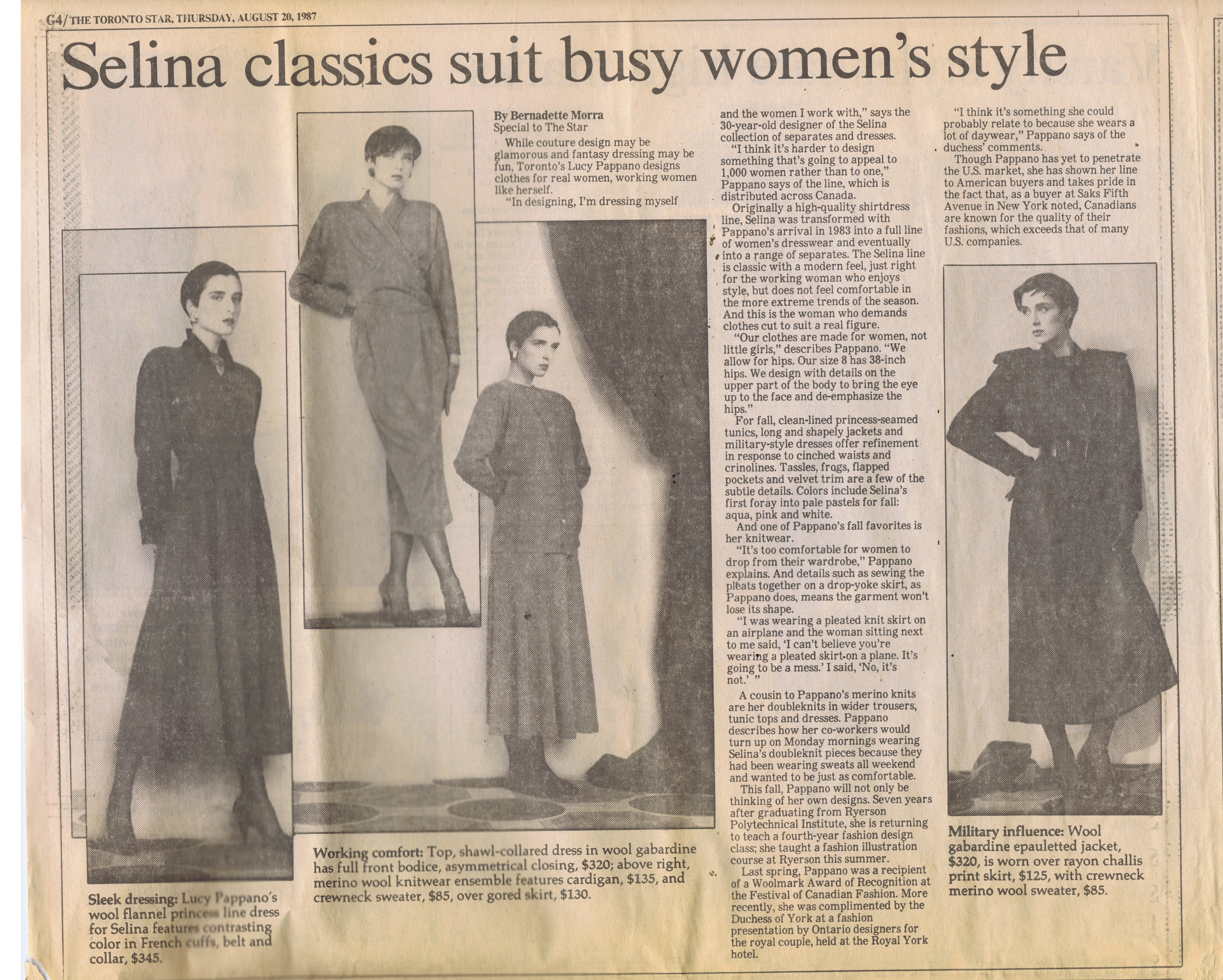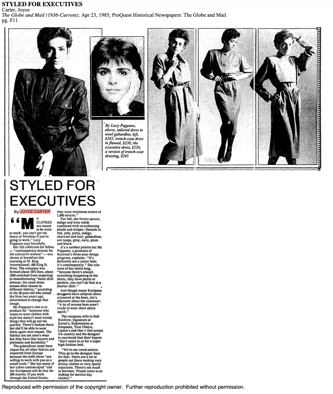 1985 LUCY PAPPANO SELINA GLOBE AND MAIL 04 23