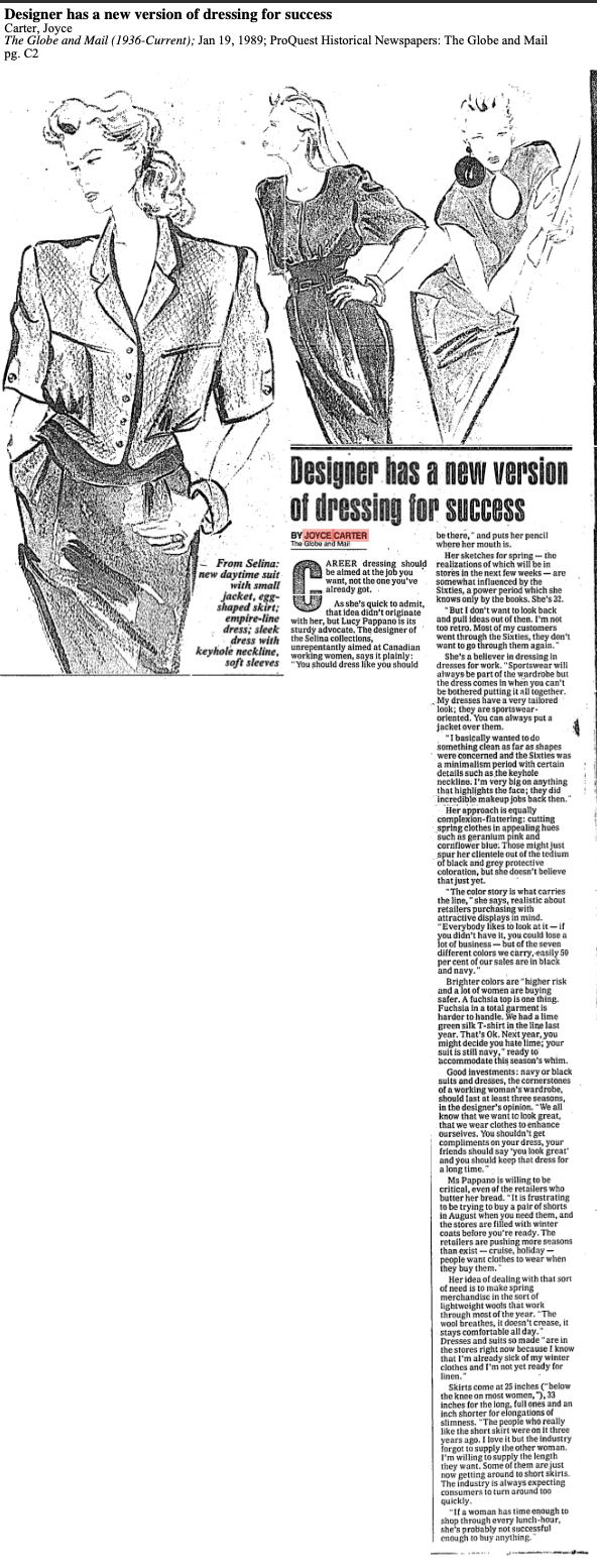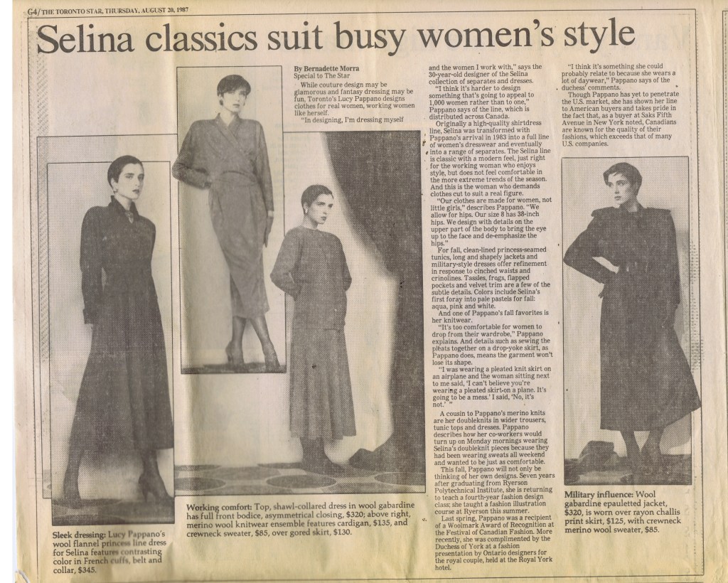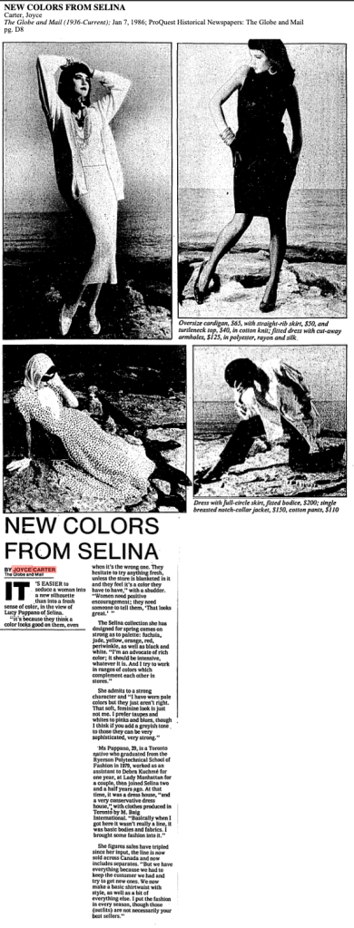 1986 LUCY PAPPANO SELINA GLOBE AND MAIL 1986 01 07 9.07.45 AM