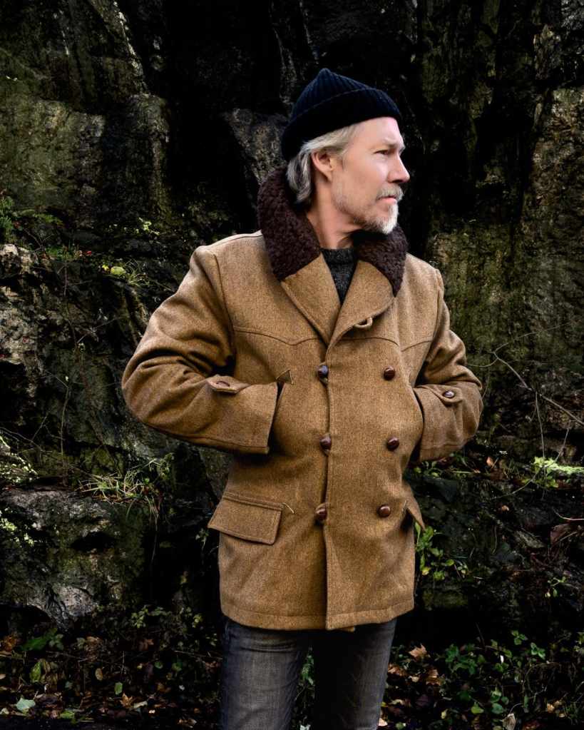 (Above) An exceptional wool winter jacket from the vintage junkies at Fleurs de Bagne! The jacket is made from traditional Burel – an wool fabric which has been valued since at least the early middle ages for its warmth, toughness and resistance to water. The classic Canadienne jacket was originally made in French Canada in the early 1900s as a robust and warm jacket for the sometimes harsh inland winters. It became popular in France in the 1940s and 1950s, not least from being worn by Jean Gabin and Jean-Paul Belmondi in the movie ”Un singe en hiver”. Updated fit – slightly shorter than the 1930s 3/4 mode