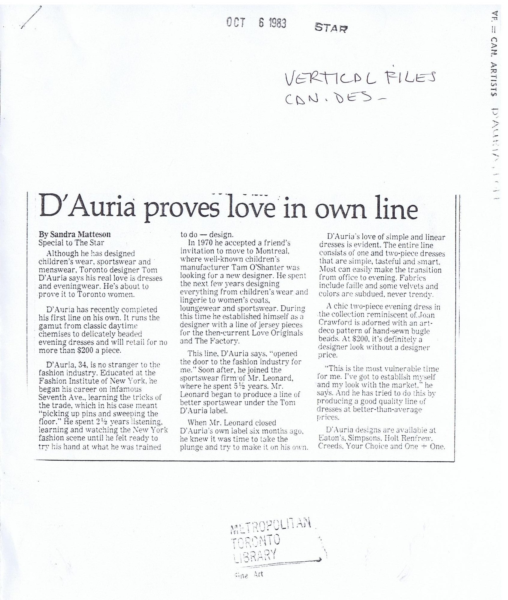 1982 WESTERN CANADIAN FASHION DESIGNERS ASSOCIATION