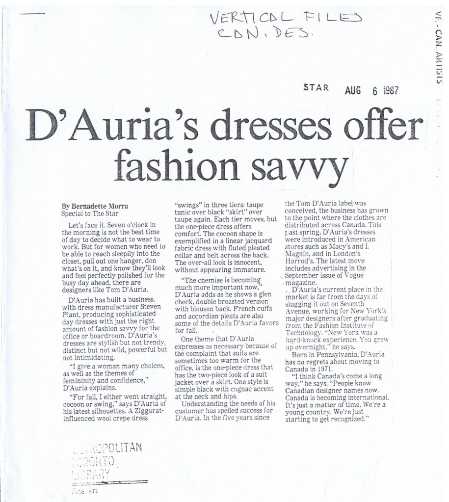 the building blocks of Canadian Fashion. How we got to "today"