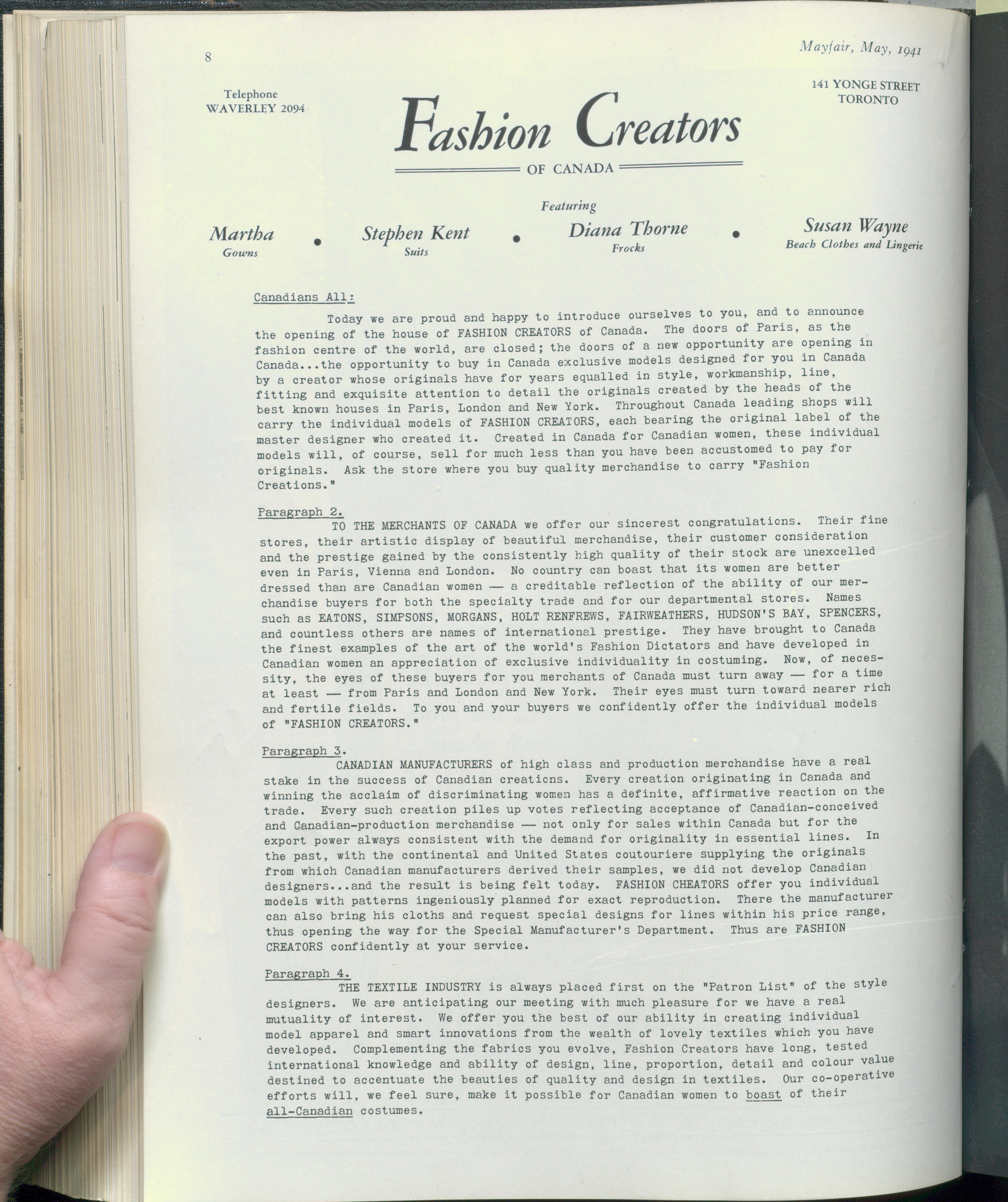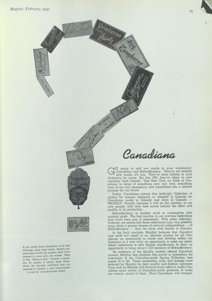1937 / 1938 MAYFAIR CANADIAN COUTURIERS USE CANADIAN TEXTILES